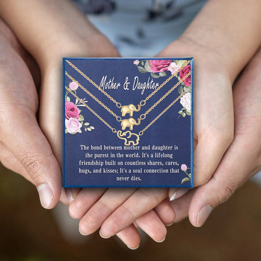 18K Gold Plated Elephant Mother Daughter Necklace Matching Jewelry Set for Women Mom Mommy Grandma Granddaughter Pendant Chain Accessories Stuff Age Birthday Mother'S Day Jewelry Gifts