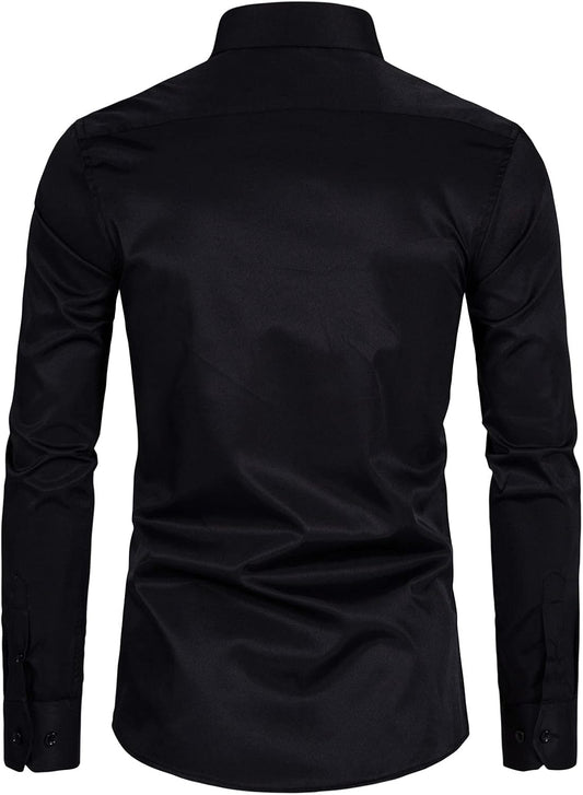 Men'S Long Sleeve Button up Shirts Solid Slim Fit Casual Business Formal Dress Shirt