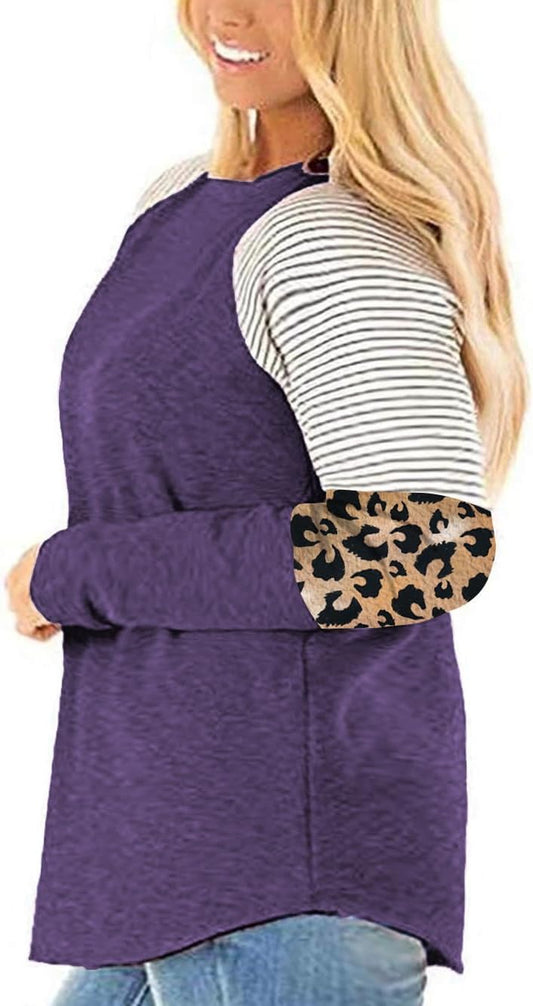 Womens plus Size Tops Long Sleeve Leopard Print Striped Color Block Shirts
